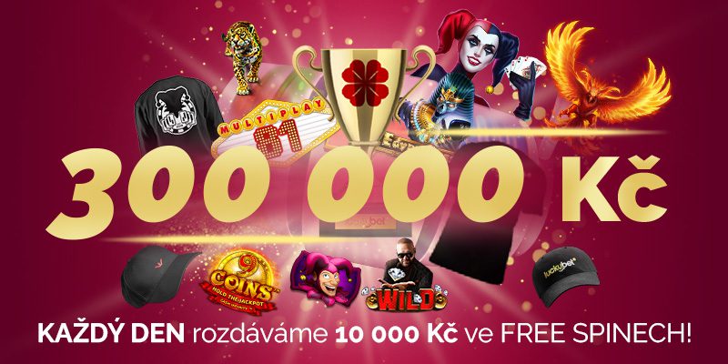 • Každý den v červnu se na LuckyBetu bude hrát o 10 000 Kč ve free spinech + 2-3 merch produkty.